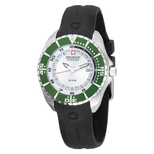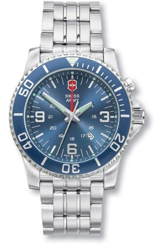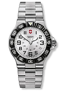 Casual watch, Swiss quartz movement, Brushed silver-tone hands with luminous accents, Luminous numbers and markers, Cream colored numbers, markers and indices, Analog date display, Polished/brushed silver-tone stainless steel bezel and case, Brushed silver-tone stainless steel crown and caseback, Anitreflective sapphire crystal, 100 meters/330 feet water resistant