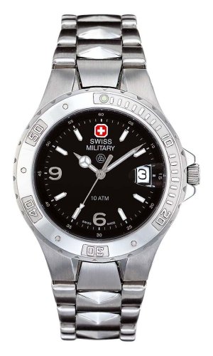 With an exhibition caseback and an unmistakable silhouette, the Victorinox Swiss Army Men's ChronoPro Watch #24661 shows off versatile, high-performance style. Featuring a stainless steel 42-millimeter case, a stainless steel bracelet band with a deployment clasp, plus a screw-down crown and screw-down pushers with black accents, this ready-for-anything accessory utilizes Swiss-made self-winding mechanical movement for unwavering precision. This ChronoPro Watch also showcases a black dial with luminous hands, luminous Arabic numeral indexes, a date window between four o'clock and five o'clock, and chronograph subdials with 12-hour, 60-second and 30-minute counters, plus a distinctive red second hand and a tachymeter scale on the inner bezel. The watch face is protected by a scratch-resistant sapphire crystal, which features an anti-reflective finish for easy reference. This chronograph is water resistant to 330 feet (100 meters).